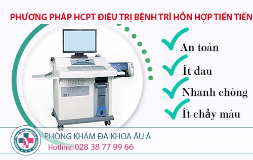 Được thực hiện bằng kỹ thuật xâm lấn tối thiểu công nghệ Hàn Quốc để hạn chế sự xâm lấn, tổn thương ở bộ phận bình thường xung quanh. Công nghệ điều trị trĩ hỗn hợp hiện được nhiều phòng khám đang áp dụng là công nghệ HCPT. Đây là công nghệ tiên tiến hiện nay giúp hỗ trợ điều trị trĩ hỗn hợp hiệu quả, nhanh chóng, an toàn với tỉ lệ tái phát thấp. Phương pháp điều trĩ này ứng dụng sóng điện cao tần để làm đông thắc các mạch máu, sau đó sử dụng dao điện để loại bỏ búi trĩ nhanh chóng, an toàn.