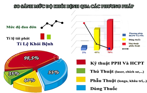 Biểu đồ so sánh hiệu quả của các phương pháp điều trị bệnh trĩ